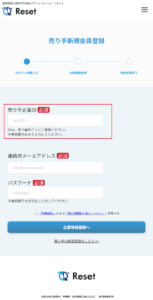 以下のボタンをクリックすると、売り手の新規登録画面へ遷移します。